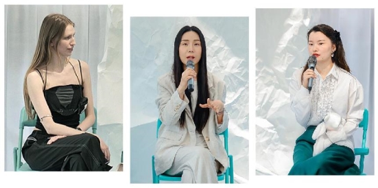 与此同时,“国际青年可持续论坛” 同步举办。帕森斯中国校友代表、GAIC_NYC 创始人刘为瑜主持圆桌对话,姜珊梓作为国际青年可持续创新大会联合创始人,与上海气候周青委会委员、艺术家、导演王静怡,Blue-Confidant 高级定制创始人兼首席设计师Jasmine Li 等嘉宾,围绕 “艺术助力可持续未来” 展开深度探讨。姜珊梓结合自身品牌运营与设计实践经验,深入阐述艺术在可持续时尚发展中的关键作用,引发与会者的强烈共鸣。