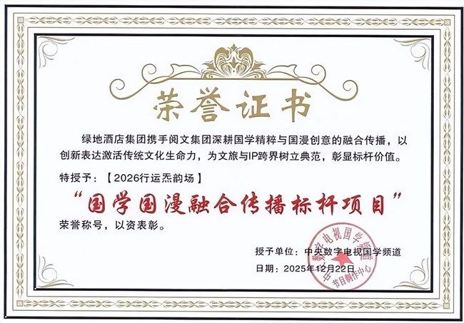此次活动的落地,源于绿地酒店旅游集团与已阅文化在12月22日达成的“国漫微度假”标杆打造的合作协议。双方围绕“IP+酒店”场景融合、长期合作模式等达成共识,标志着优质国漫资源与高端文旅场景的深度绑定进入实质阶段。值得关注的是,中央数字电视国学频道特别授予该活动“国学国漫融合传播标杆项目”称号,肯定其在传统文化创新传播领域的示范价值。